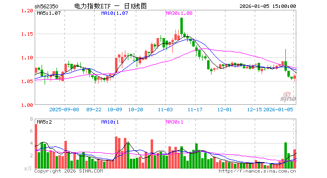 1月5日,电力指数ETF(562350)涨0.57%,成交额317.30万元。当日份额增加100.00万份,最新份额为3841.09万份,近20个交易日份额增加100.00万份。最新资产净值计算值为4071.94万元。