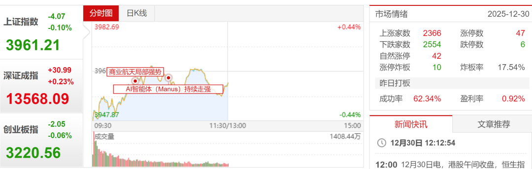 最神奇的是, 今天沪指还真有可能10连阳,因为它大幅低开,现在哪怕是收跌的状态也能完成连阳,那31号似乎都还可以再阳一天。这里可能真要拜中证A500的期权设置的消息所赐, 上面用着一根胡萝卜,就完成了年底护盘任务,让市场资金市场动起来。总体来说今年指数表现还是可以的,但是个股操作难度较大,昨天的问卷调查显示六成没赚钱,也可能是真的,因此, 这里还是提醒大家,操作上需要同时布局一些个股和指数ETF,避免踏空。