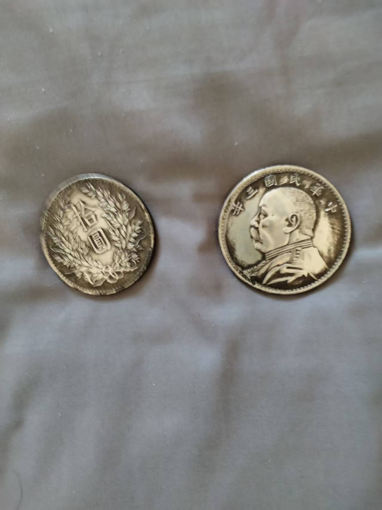 - **文字布局**:“中华民国三年”的字样环绕袁像,字体为隶书变体,笔画厚重——“三年”后未加“造”字,是民国三年袁大头的典型特征(后期年份多添“造”字),这一细节也成了鉴别其年份的核心标识。