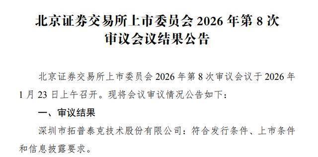 瑞财经 李兰1月23日,深圳市拓普泰克技术股份有限公司(以下简称“拓普泰克”)北交所IPO过会,保荐机构为广发证券股份有限公司,会计师事务所为天健会计师事务所(特殊普通合伙),律师事务所为广东华商律师事务所。
