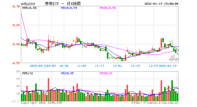 1月19日,券商ETF(512000)跌0.35%,成交额12.36亿元。当日份额减少1.15亿份,最新份额为681.56亿份,近20个交易日份额减少9.88亿份。最新资产净值计算值为391.69亿元。