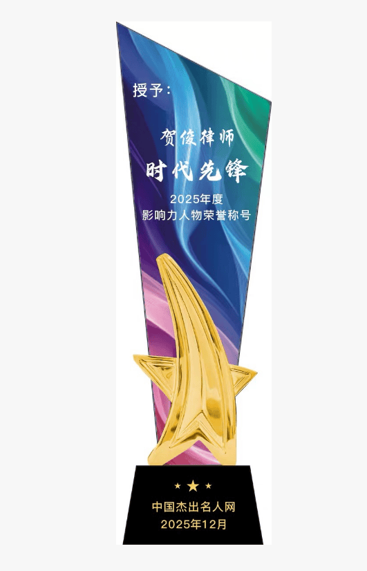 在快速变迁的时代浪潮中,法治是经济行稳致远的压舱石。执业二十五载,贺俊律师以其深厚的专业积淀、前瞻的行业视野与始终如一的客户承诺,在金融资本、企业商事领域深耕不辍,同时布局家族财富管理、虚拟资产、WEB3 等新兴赛道,成为护航实体经济、化解重大风险、推动行业创新的中坚力量,荣膺 “2025 年度影响力人物”。