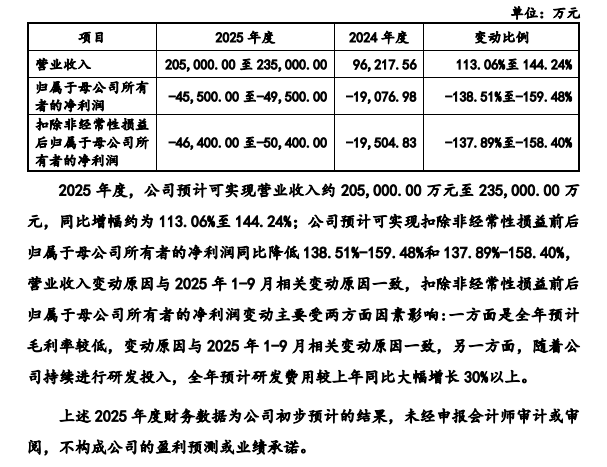 根据招股书,2022年、2023年、2024年,大普微营业收入分别为5.57亿元、5.19亿元、9.62亿元;净亏损分别为5.34亿元、6.17亿元、1.91亿元。2025年度,大普微预计可实现营业收入约20.5亿元至23.5亿元,同比增幅约为113.06%至144.24%;大普微预计可实现扣除非经常性损益前后归属于母公司所有者的净利润亏损4.64亿元至5.04亿元。