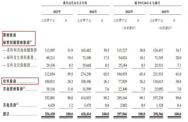 所谓“一小”,即妇婴相关医疗服务,涵盖产科、妇科、生殖科、儿科及儿保服务,2024年贡献了公司65.5%的营收,是绝对的收入支柱。“一老”则对应骨科服务,聚焦复杂脊柱手术、关节置换与微创骨科手术,莲池医院方面称其骨科业务专注于改善老年人的生活质量,2024年贡献了公司26.1%的营收。此外,该公司于2025年8月开始运营一家名为“莲慈医养”的养老机构,业务尚处于起步阶段。