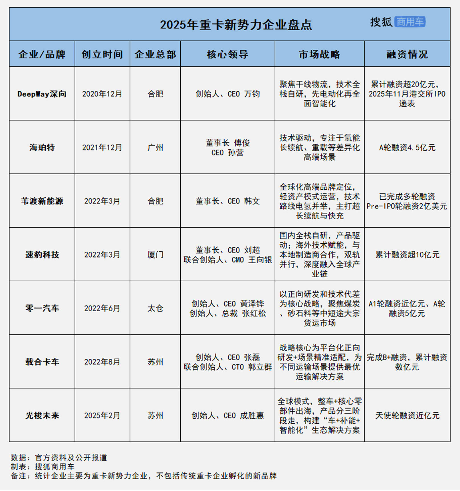 活下去,靠融资是本事,但能卖车能靠自身能力“造血”才能走得更远。从2025年迈向2026年,DeepWay深向、海珀特、苇渡新能源、速豹科技、零一汽车、载合卡车、光梭未来,这七家重卡新势力,虽入局节奏不一,却面临着同样的市场竞争法则。在行业加速渗透的浪潮中,谁将更进一步,谁又将面临考验?