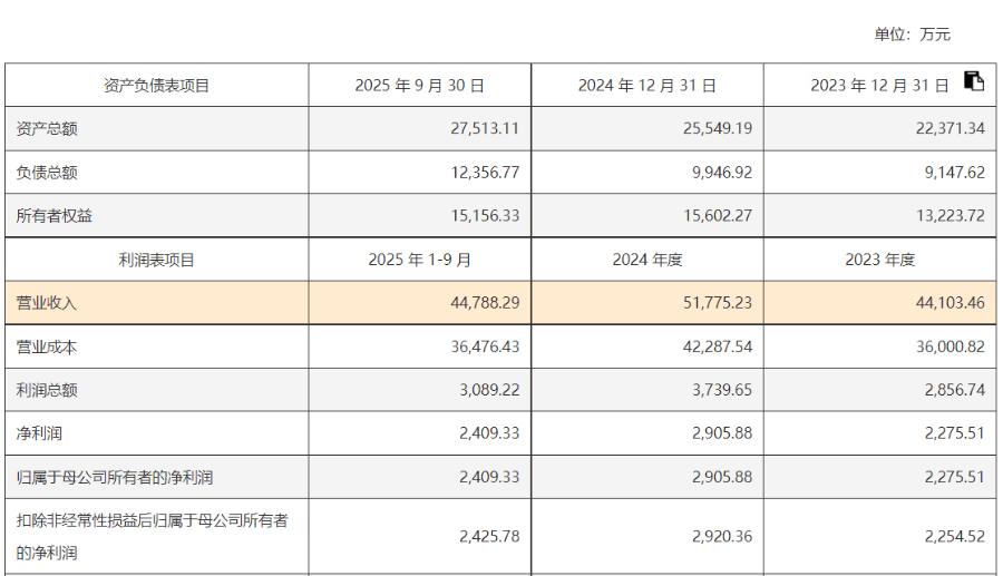 同期,怡海能达实现营业收入44,103.46万元和51,775.23万元,净利润2,275.51万元和2,905.88万元。