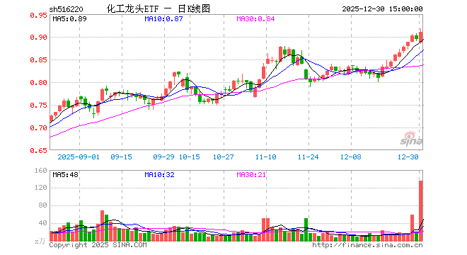 12月30日,化工龙头ETF(516220)涨1.79%,成交额1.25亿元。当日份额增加1.16亿份,最新份额为3.48亿份,近20个交易日份额增加6400.00万份。最新资产净值计算值为3.17亿元。