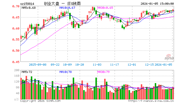 1月5日,创业大盘ETF(159814)涨0.89%,成交额5634.53万元。当日份额减少2200.00万份,最新份额为7.58亿份,近20个交易日份额减少1.14亿份。最新资产净值计算值为5.18亿元。