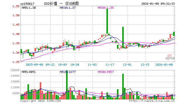 500价值ETF(159617)业绩比较基准为中证智选500价值稳健策略指数收益率,管理人为华夏基金管理有限公司,基金经理为荣膺,成立(2022-06-09)以来回报为39.60%,近一个月回报为3.00%。