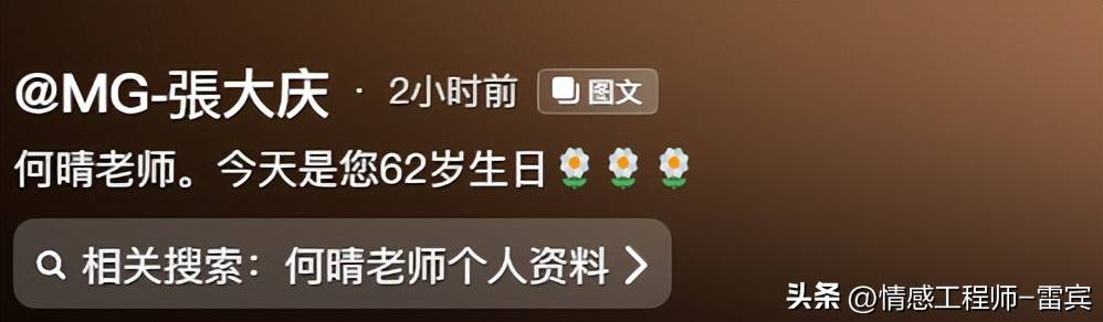 尽管何晴的离世已经有些时日,许多人早已转移了注意力,被网络上的喧嚣所吸引,但在张大庆的缅怀之下,依然有网友表达了他们的思念与祝福。这一份情感,虽显微弱,但却真实存在,足见何晴在大家心中的分量。