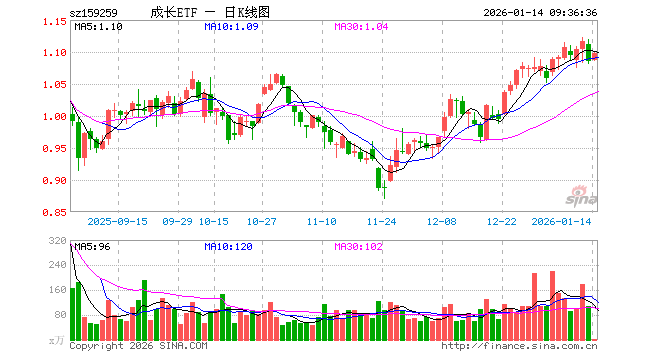 1月14日,成长ETF易方达(159259)开盘涨0.18%,报1.087元。成长ETF易方达(159259)重仓股方面,北方稀土开盘跌0.61%,指南针跌0.87%,澜起科技涨1.92%,思特威涨0.00%,生益科技涨0.85%,仕佳光子涨1.34%,深信服涨2.27%,东阳光跌1.09%,亚钾国际涨0.08%,生益电子涨1.24%。