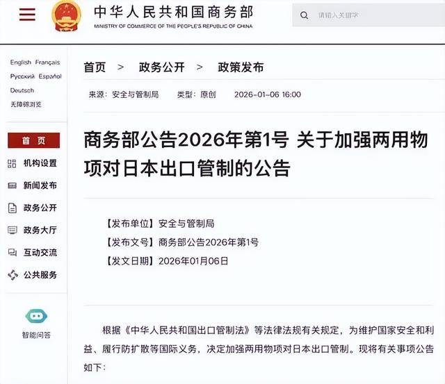 美方焦虑并非空穴来风,中国商务部1月6日发布管制措施。