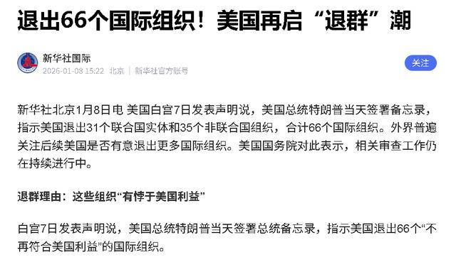 2026年刚来,特朗普签了份备忘录,直接决定退出66个国际组织,其中包括31个联合国下属机构。