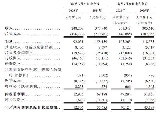 业绩方面,2023年、2024年以及截至2025年9月30日止九个月(报告期内),国医科技的收入分别为2.48亿元、3.78亿元及3.06亿元;净利润分别约为1230万元、5760万元及4320万元。