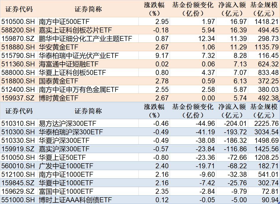 与此同时,易方达沪深300ETF基金份额减少44.96亿份,净流出额204.01亿元;华泰柏瑞沪深300ETF基金份额减少41.19亿份,净流出额193.72亿元;华夏沪深300ETF基金份额减少38.08亿份,净流出额186.32亿元。