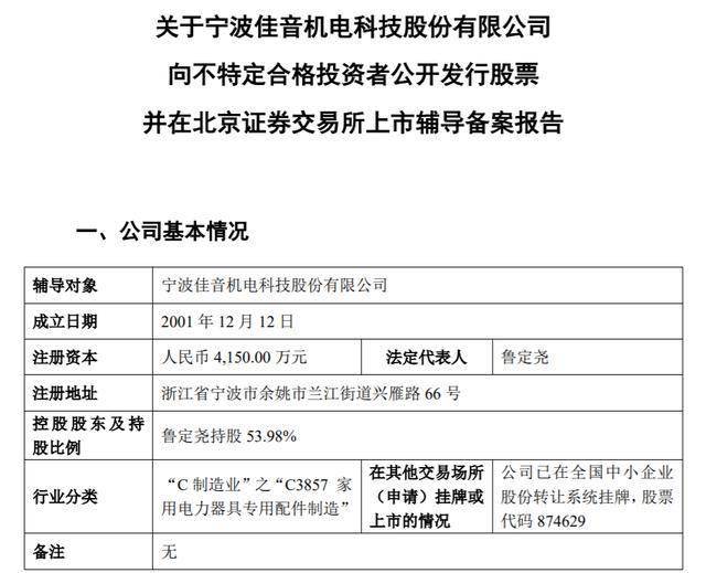 瑞财经 王敏 1月22日,宁波佳音机电科技股份有限公司(以下简称“佳音科技”)在宁波监管局启动IPO辅导,拟北交所上市,辅导机构为广发证券。