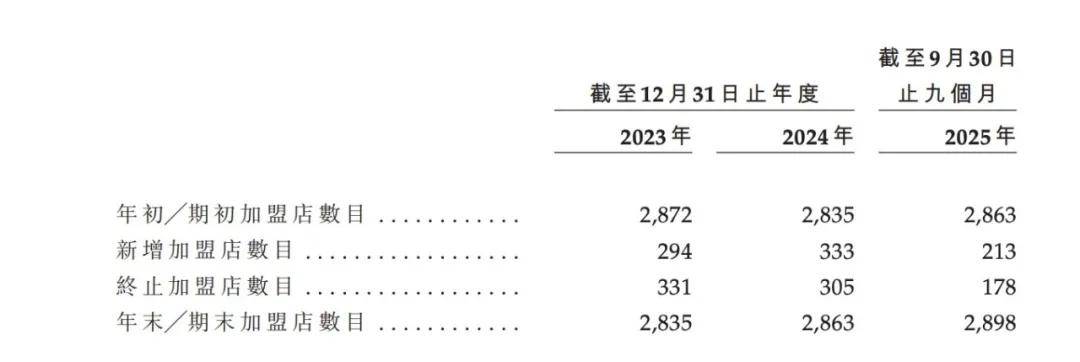据招股书,截至2025年9月30日,钱大妈总共有2938家社区门店,其中加盟店2898家。2024年,总门店和加盟店分别为2922家和2863家, 2025年门店总数基本变化不大,稳住基本总量的情况下,并没有明显的扩张。