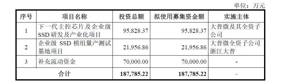 大普微本次 IPO 拟募集资金约 18.78 亿元,重点投向下一代主控芯片及企业级 SSD 研发与产业化、企业级 SSD 模组量产测试基地建设及补充流动资金。募投方向紧密围绕规模化交付能力、测试一致性与供应链稳定性等关键环节,服务于公司在更大规模数据中心项目中的持续参与能力。