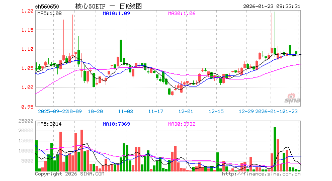 1月23日,核心50ETF(560650)开盘涨0.00%,报1.086元。核心50ETF(560650)重仓股方面,东方财富开盘涨0.21%,恒瑞医药涨0.49%,阳光电源涨0.38%,万华化学涨0.40%,迈瑞医疗涨0.65%,豪威集团涨0.01%,福耀玻璃涨0.20%,天孚通信跌0.50%,思源电气跌0.54%,生益科技涨1.35%。