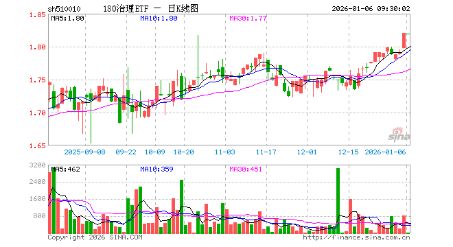 1月6日,180治理ETF(510010)开盘跌0.05%,报1.819元。180治理ETF(510010)重仓股方面,贵州茅台开盘涨0.46%,招商银行涨0.24%,中国平安涨0.06%,紫金矿业涨1.69%,工商银行跌0.13%,长江电力涨0.07%,兴业银行涨0.00%,恒瑞医药涨0.44%,澜起科技涨0.98%,伊利股份跌0.21%。