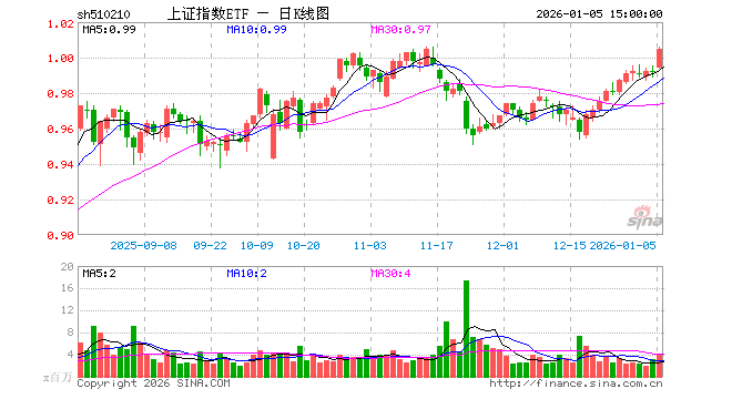 1月5日,上证指数ETF(510210)涨1.31%,成交额3.92亿元。当日份额减少1.32亿份,最新份额为57.92亿份,近20个交易日份额减少3.96亿份。最新资产净值计算值为58.21亿元。