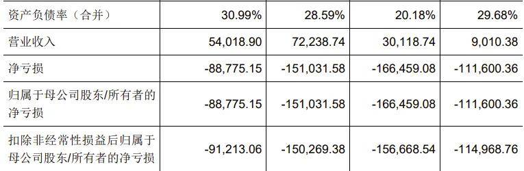 2022年、2023年、2024年及2025年1-9月,公司实现营业收入分别为0.9010亿元、3.0119亿元、7.2239亿元及5.4019亿元,扣非归母净利润分别为-11.50亿元、-15.67亿元、-15.03亿元及-9.12亿元。