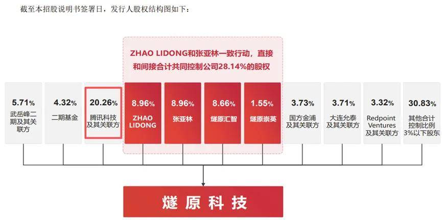 公司前身有限公司成立于2018年3月,2023年12月整体变更为股份公司,目前注册资本3.8731亿余元。公司无控股股东,公司共同实际控制人 ZHAO LIDONG、张亚林合计直接持有公司 17.9287%的股权,通过燧原汇智与燧原崇英两个员工持股平台间接控制公司 10.2070%的股权,两名实际控制人合计控制公司 28.1357%的股权。