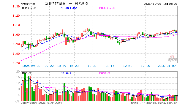 1月9日,双创ETF基金(588310)涨0.29%,成交额330.65万元。当日份额减少120.00万份,最新份额为5703.75万份,近20个交易日份额减少840.00万份。最新资产净值计算值为5941.03万元。