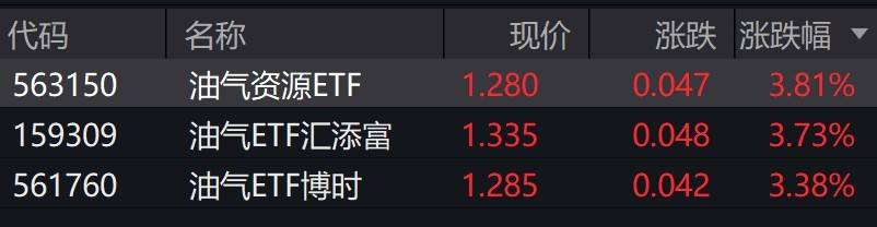 受盘面影响,油气相关ETF涨超3%。