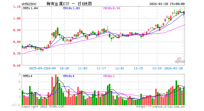 1月20日,稀有金属ETF(562800)跌1.14%,成交额4.70亿元。当日份额增加1.86亿份,最新份额为58.78亿份,近20个交易日份额增加16.13亿份。最新资产净值计算值为60.89亿元。