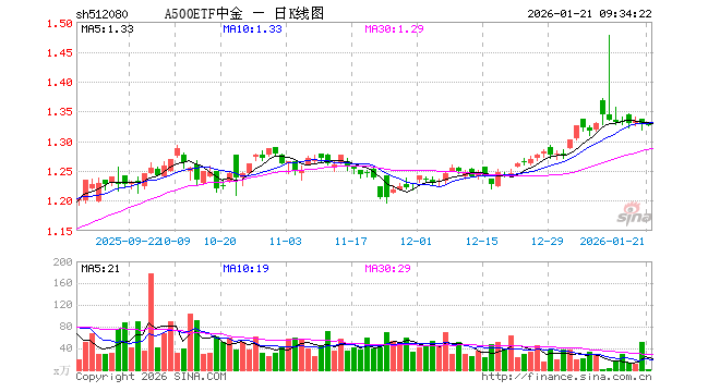 1月21日,A500ETF中金(512080)开盘涨0.08%,报1.329元。A500ETF中金(512080)重仓股方面,宁德时代开盘涨0.67%,贵州茅台涨0.00%,中国平安涨0.06%,招商银行涨0.49%,紫金矿业涨1.21%,美的集团跌0.05%,新易盛涨0.12%,中际旭创涨0.21%,东方财富跌0.04%,长江电力涨0.04%。