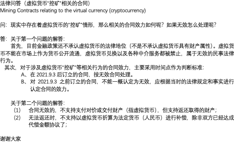 法律问答(虚拟货币“挖矿”相关的合同) Mining Contracts relating to the virtual currency (cryptocurrency)