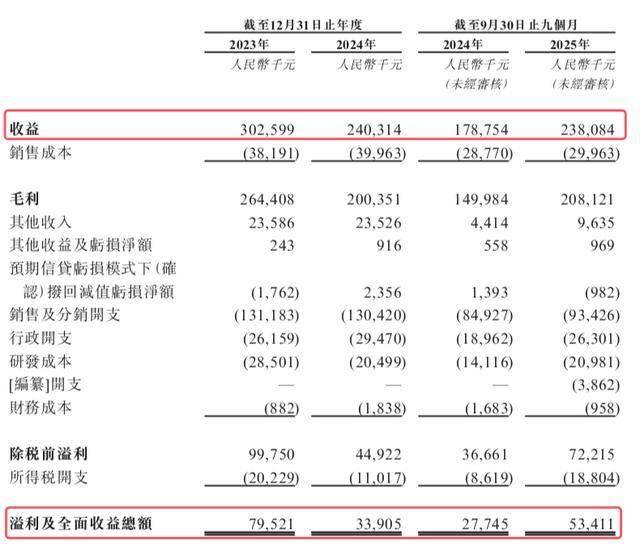 2025年前三季度,公司收入为2.38亿元,同比增长33%;利润为5341.1万元,同比增长93%。