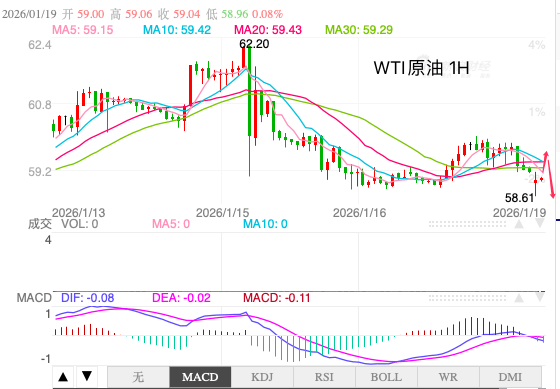WTI价格在连续两日下跌超过3%后,周五亚洲交易时段走势平稳,交投于每桶58.80美元附近。由于市场对美国可能对伊朗发动军事打击的担忧有所缓解,地缘政治风险溢价有所回落,WTI价格面临挑战。