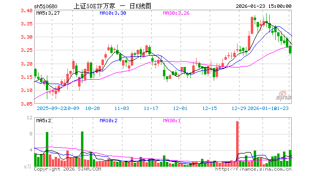 1月23日,上证50ETF万家(510680)跌0.71%,成交额1295.19万元。当日份额减少60.00万份,最新份额为3072.47万份,近20个交易日份额增加1200.00万份。最新资产净值计算值为9955.11万元。