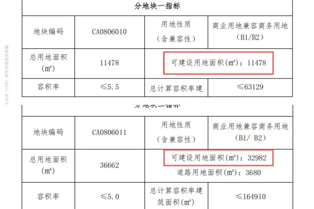 项目规划的商业部分为两个分地块,其中地块一11478方、地块二32982方,两者合计刚好与公告中的4.446公顷相符。