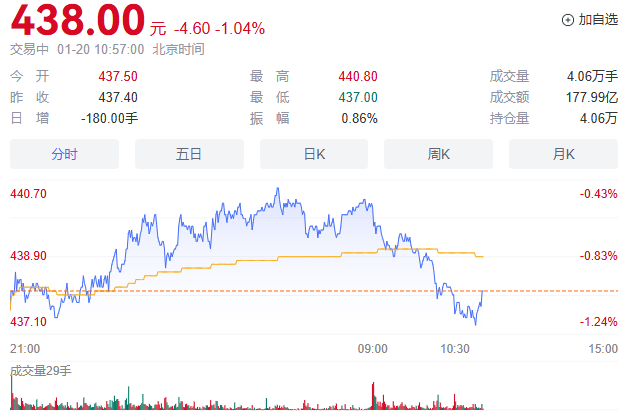 1月20日,国际原油市场再现“过山车”行情。亚洲交易时段,西得州中质原油(WTI)价格在59美元一线反复拉锯,早盘一度触及59.69美元/桶的日内高点,随后震荡回落,截至10时54分,美原油连续报59.38美元/桶,微涨0.16美元,涨幅0.27%。国内市场同步震荡,原油主力合约SC2603今开437.5元/桶,最高冲至440.8元/桶,最低下探437.0元/桶,午盘前报438.9元/桶,跌幅1.13%,成交量达40354手。这种“上蹿下跳”的走势,本质是多空因素短期激烈博弈的结果,供需端的结构性矛盾、地缘局势的边际变化与宏观金融环境的扰动形成共振,共同主导了今日市场波动。