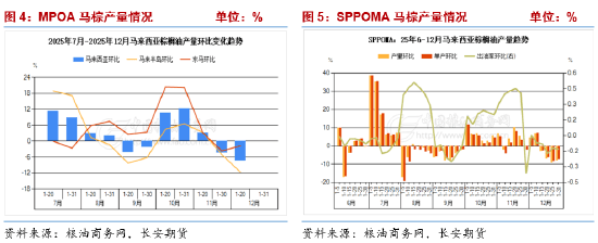 根据最新的数据来看,产量虽出现了小幅下降,但仍不足以带来产地库存的去化。马来西亚棕榈油协会(MPOA)称,2025年12月1-20日马来西亚棕榈油产量环比下降7.44%,其中马来西亚半岛的产量环比下降11.66%,沙巴的产量环比下降2.12%;沙捞越的产量环比下降0.75%;东马来西亚的产量环比下降1.73%。