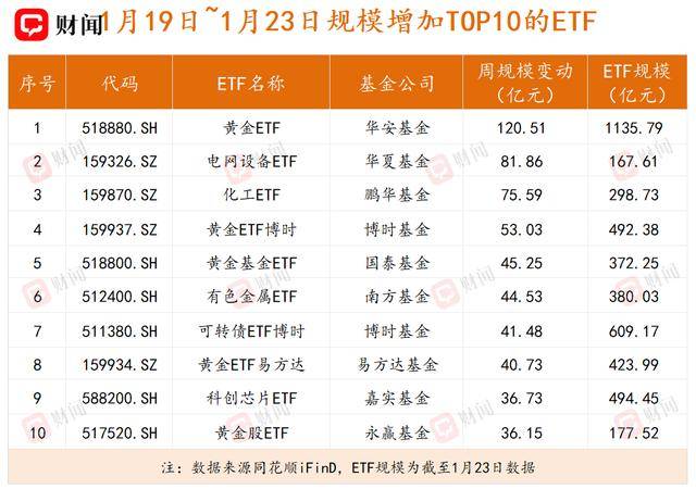 在资金净流入与净值上涨的双重因素的推动下,华安基金旗下的黄金ETF(518880.SH)规模在突破千亿元大关后持续扩张。上周,该产品规模增加120.51亿元,截至1月23日,总规模已达1135.79亿元。