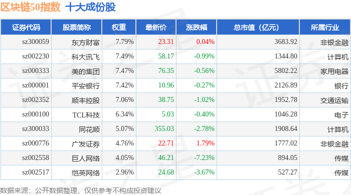 证券之星消息,1月26日,区块链50(399286)指数报收于4319.63点,跌1.84%,成交907.15亿元,换手率4.56%。当日该指数成份股中,上涨的有7家,顺网科技以11.18%的涨幅领涨,下跌的有43家,巨人网络以7.23%的跌幅领跌。