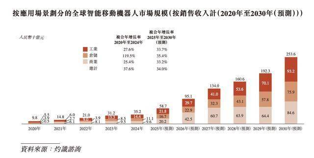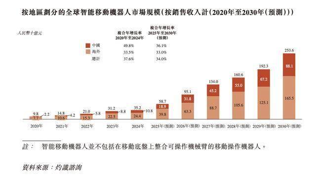 按销售收入计,全球智能移动机器人市场规模由2020年的98亿元增至2024年的352亿元,复合年增长率为37.6%,预期到2030年将达2,536亿元,2025年至2030年的复合年增长率为34.0%。