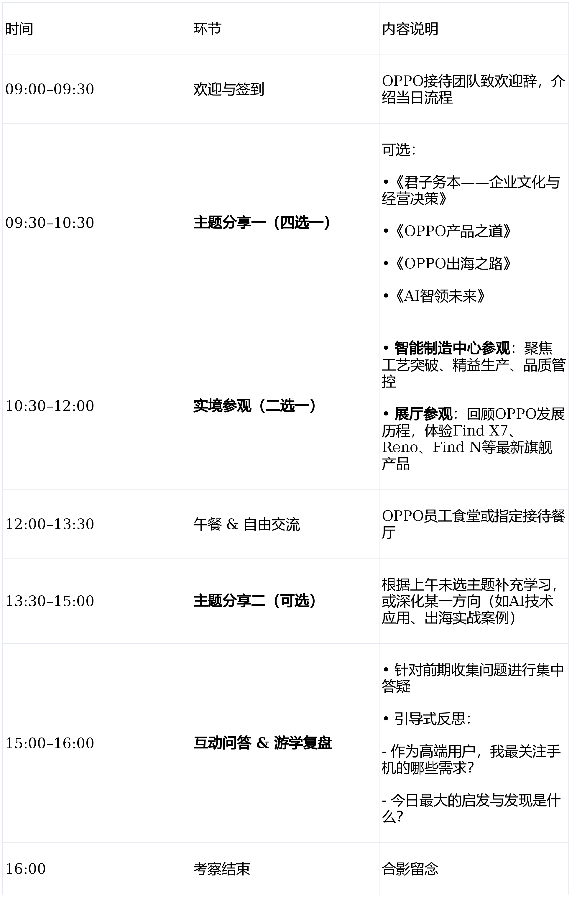 如需预约或定制专属行程,请联系:OPPO企业研学合作部