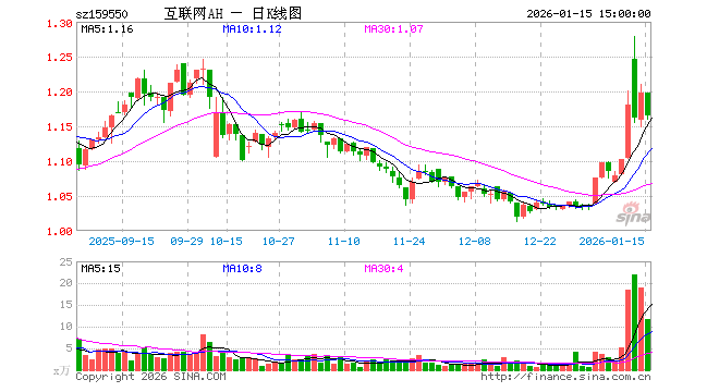 1月15日,互联网ETF东财(159550)跌2.67%,成交额1381.55万元。当日份额减少70.00万份,最新份额为1.41亿份,近20个交易日份额增加1050.00万份。最新资产净值计算值为1.65亿元。