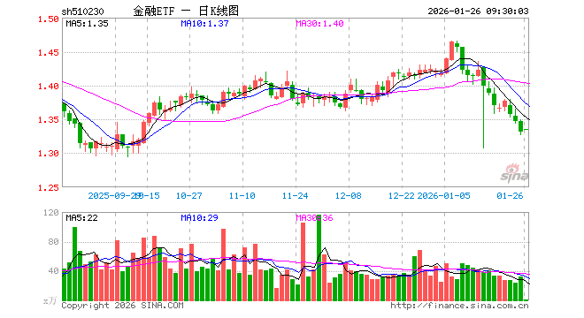 1月26日,金融ETF(510230)开盘涨0.30%,报1.335元。金融ETF(510230)重仓股方面,中国平安开盘涨0.16%,招商银行涨0.00%,兴业银行跌0.05%,中信证券涨0.00%,工商银行跌0.28%,国泰海通涨0.00%,农业银行涨0.00%,交通银行跌0.15%,浦发银行跌0.19%,江苏银行跌0.10%。