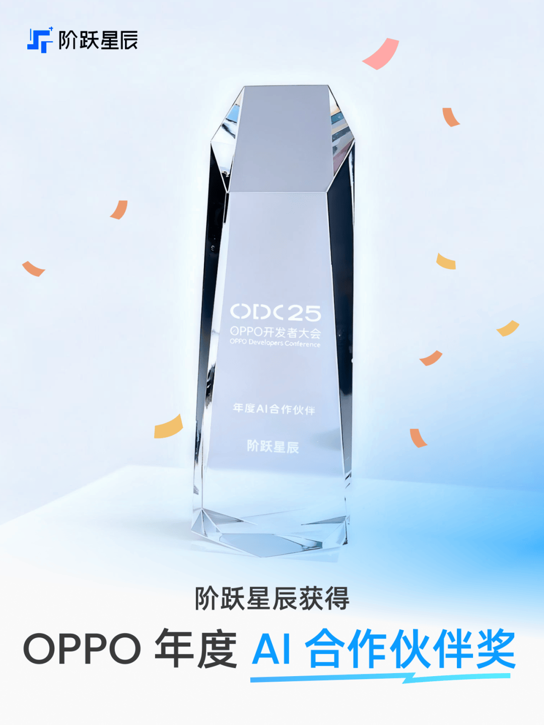 近日,OPPO 在深圳举办了 2025 开发者大会(ODC25),会上推出了全新 ColorOS 16,并发布 OPPO AI 的「新计算、新感知、新生态」全新战略布局。阶跃星辰荣获OPPO 2025「年度 AI 合作伙伴」,连续两年获得 OPPO 重磅生态合作伙伴奖项。
