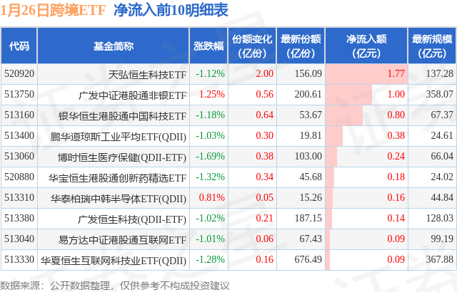 【ETF观察】1月26日跨境ETF净流出1.4亿元