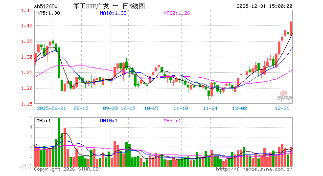 12月31日,军工ETF广发(512680)涨2.84%,成交额2.78亿元。当日份额减少1.45亿份,最新份额为42.52亿份,近20个交易日份额减少18.94亿份。最新资产净值计算值为59.72亿元。