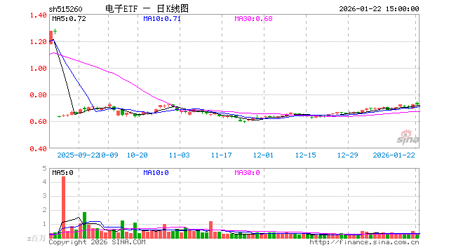 1月22日,电子ETF(515260)涨0.00%,成交额2252.92万元。当日份额减少200.00万份,最新份额为8.43亿份,近20个交易日份额减少4600.00万份。最新资产净值计算值为6.10亿元。