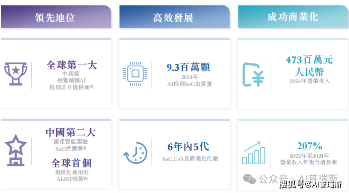 灼识咨询数据显示,按2024年出货量计算,爱芯元智为全球第一大中高端视觉端侧AI推理芯片提供商,在全球视觉端侧AI推理芯片市场中位列前五。在中高端细分市场,其市场占有率达到24.1%。