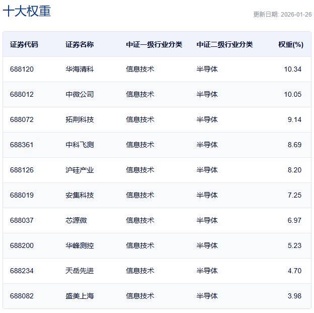 上证科创板半导体材料设备主题指数主要权重股